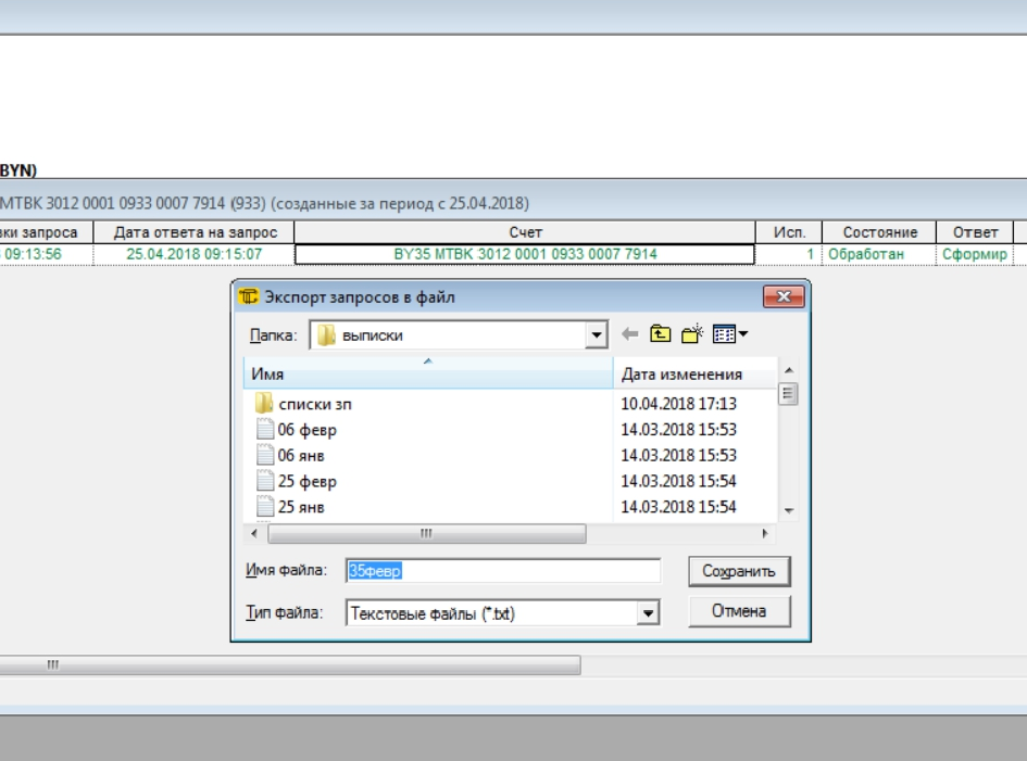 Б) В формате .txt. Для этого вернитесь в окно с выписками.