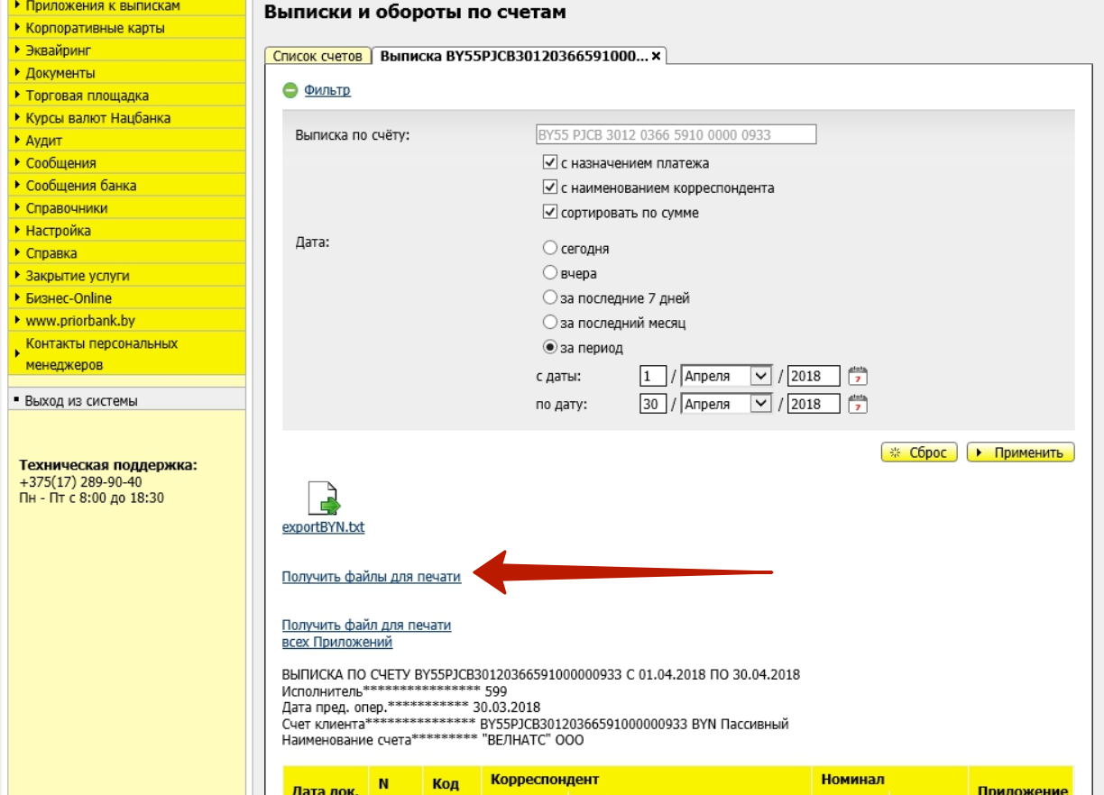 4. Нажмите сначала на кнопку "export.txt", у Вас сохранится выписка в формате .txt.