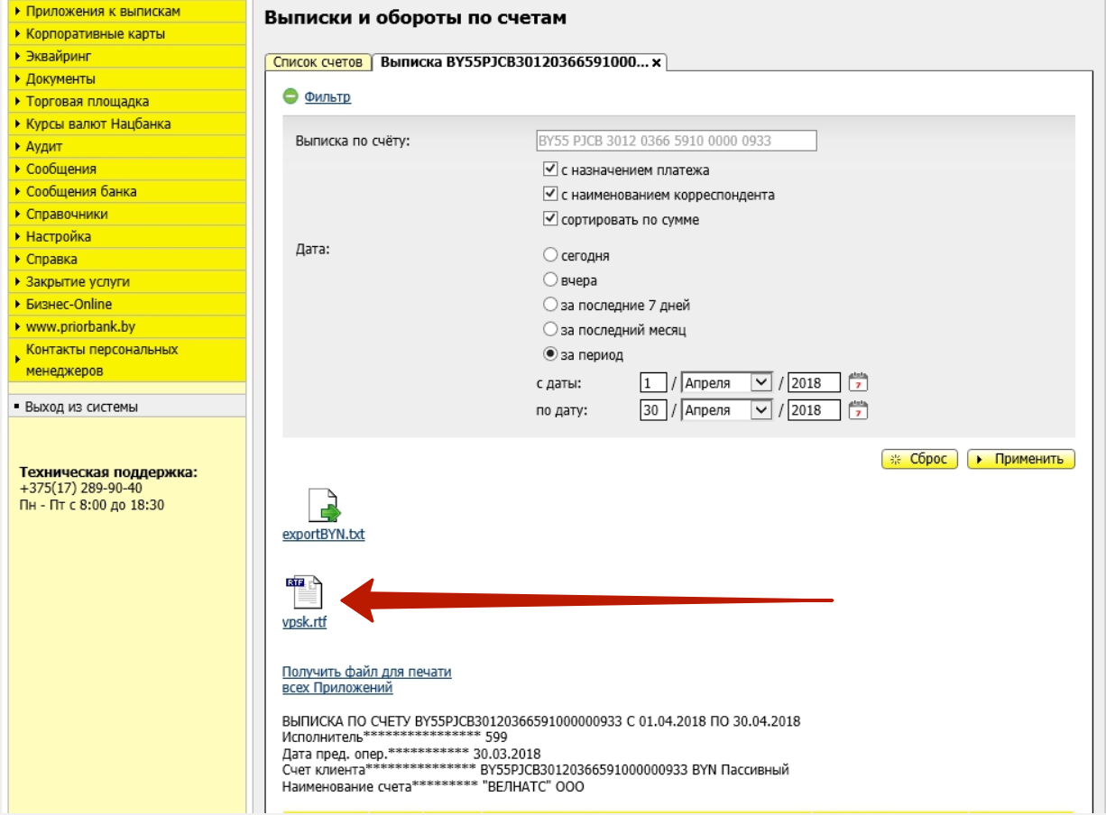 5. Затем нажмите "Получить файлы для печати". У вас появится вордовская иконка "vpsk.rtf". Нажмите на нее и сохраните выписку в формате .rtf.