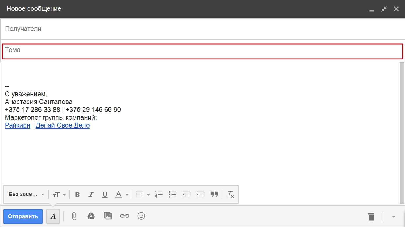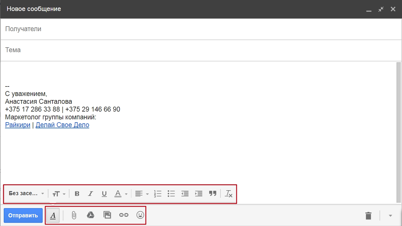 Однако, советуем не злоупотреблять этими настройками, т.к. на разных почтовых сервисах информация может отображаться по-разному. И есть вероятность, что письмо будет выглядеть не так красиво, как Вы задумали первоначально.