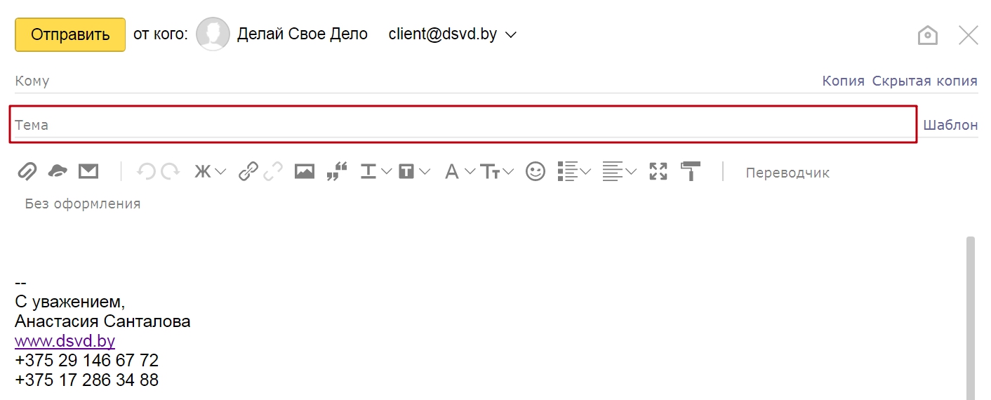 Также имейте в виду, что текст письма должен соответствовать теме. Если в письме с темой “Данные по заработной плате” Вы, после того как выслали данные, попросите уволить сотрудника - получить Ваш запрос и не потерять его будет сложнее, чем когда Вы создадите новое письмо с новой темой.
